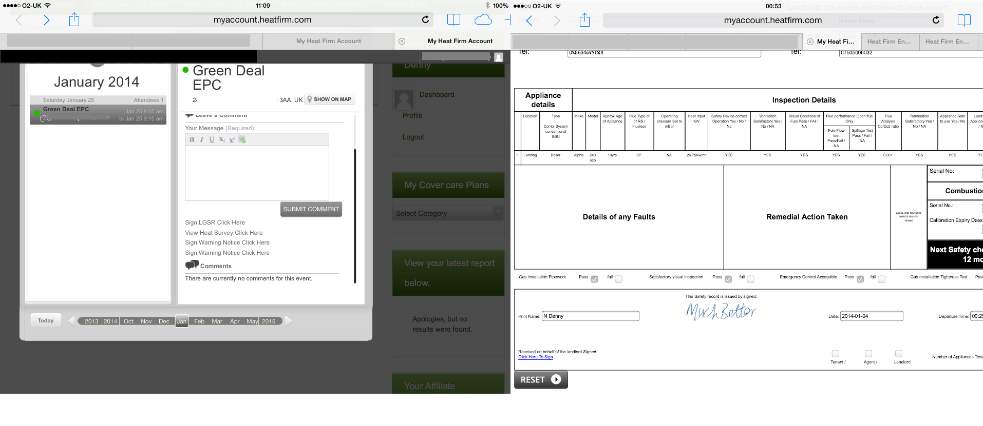 Heat firm td also offered state of the art boiler cover care through it’s online portal allowing customers to have there own accounts, pay a subscription, which covered Annual boiler servicing, boiler repairs and some parts, and for Landlords Gas safety reports.